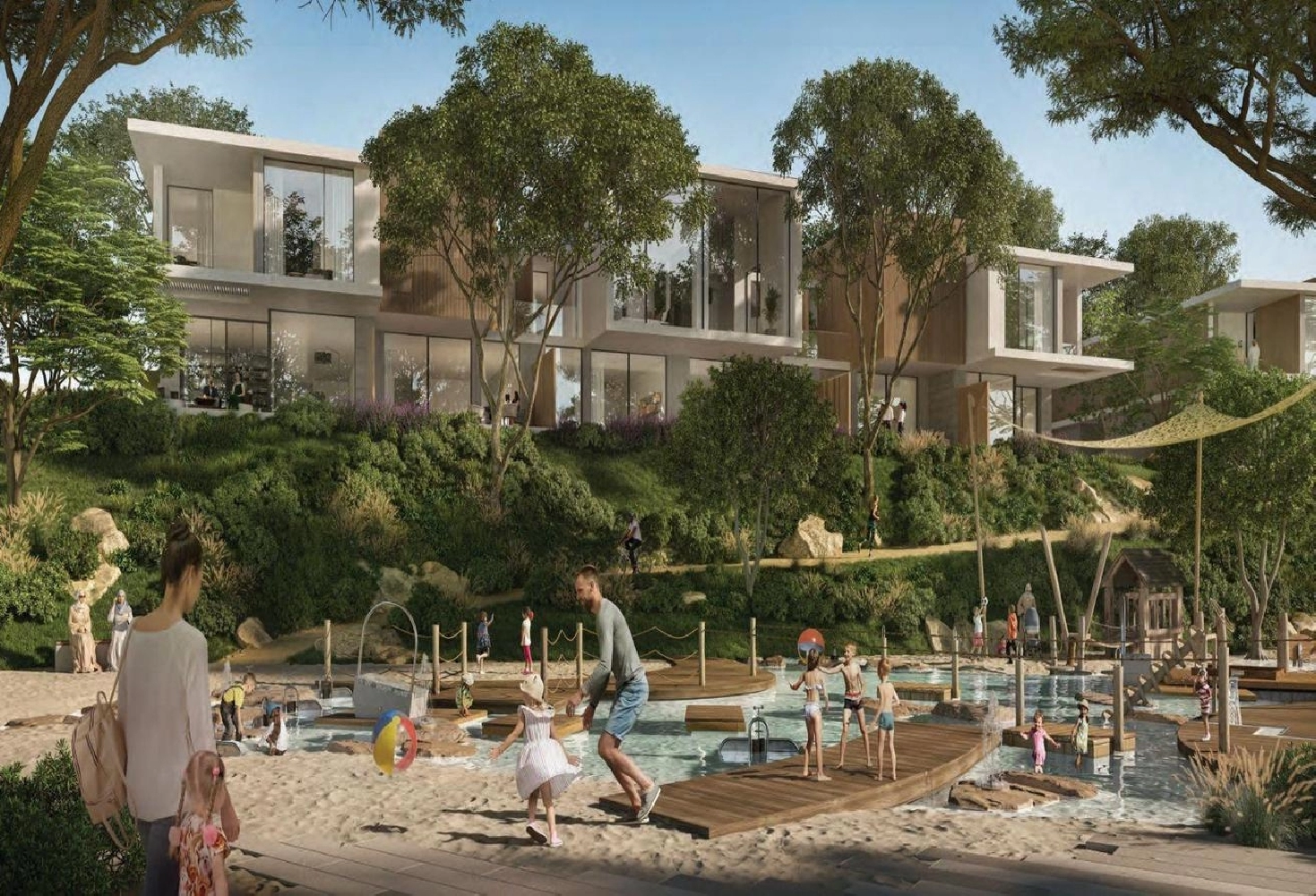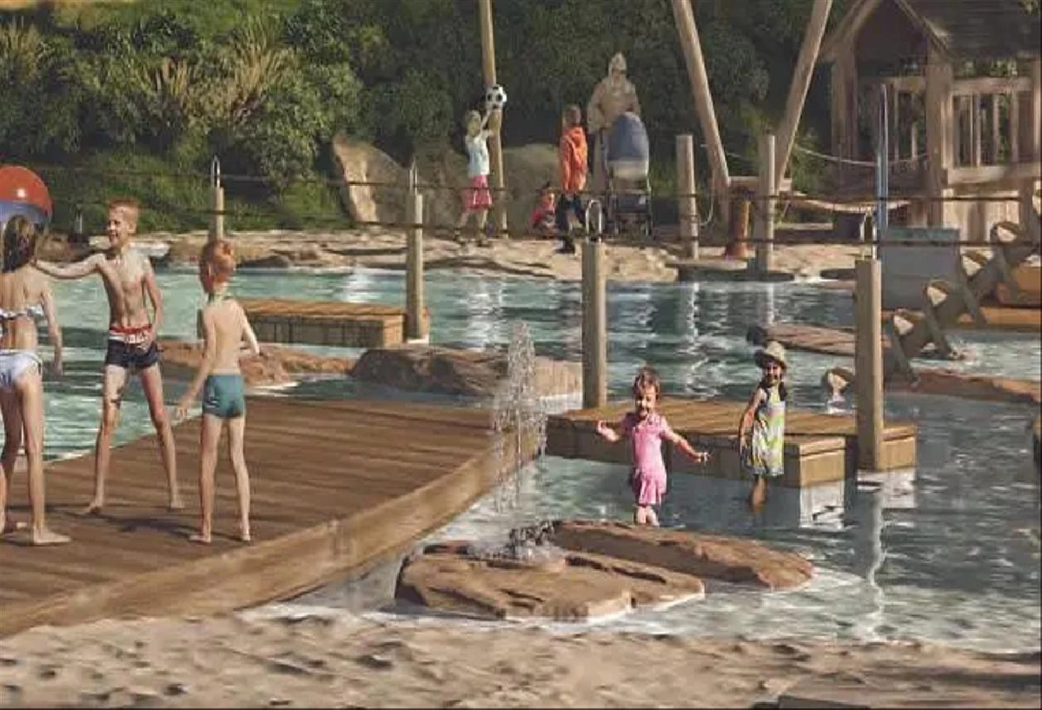 - Swimming pools, splash pads and kids’ play areas