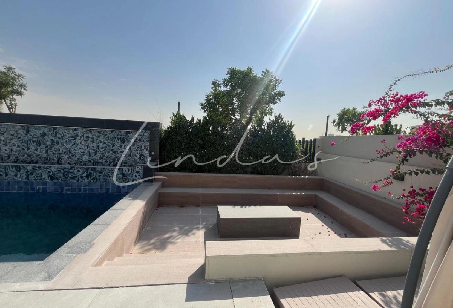 - Swimming pool with side water feature