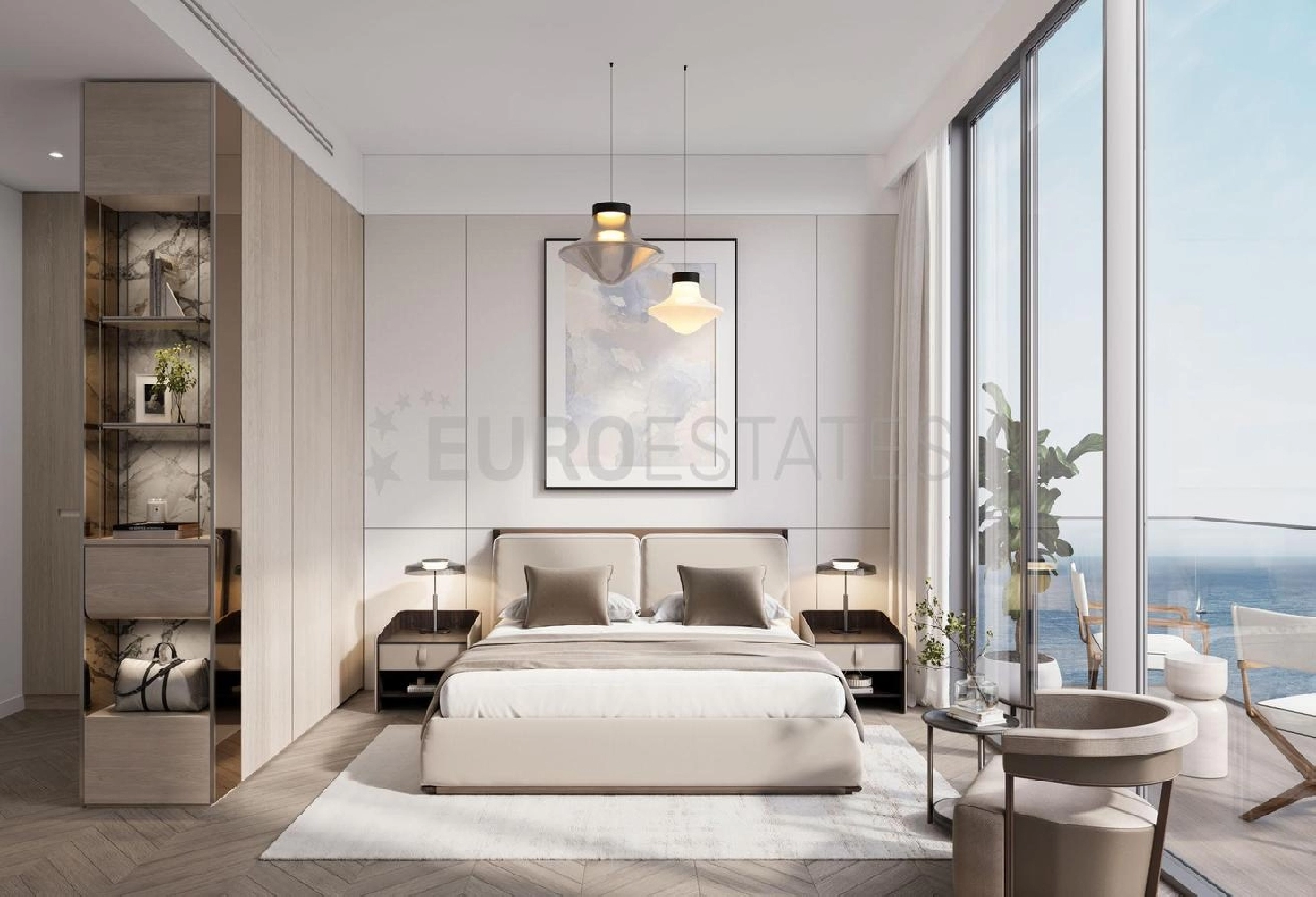 - Comfortable bedroom: Balcony access with stunning views of the Arabian Gulf and Wynn Casino.