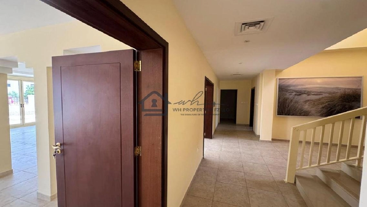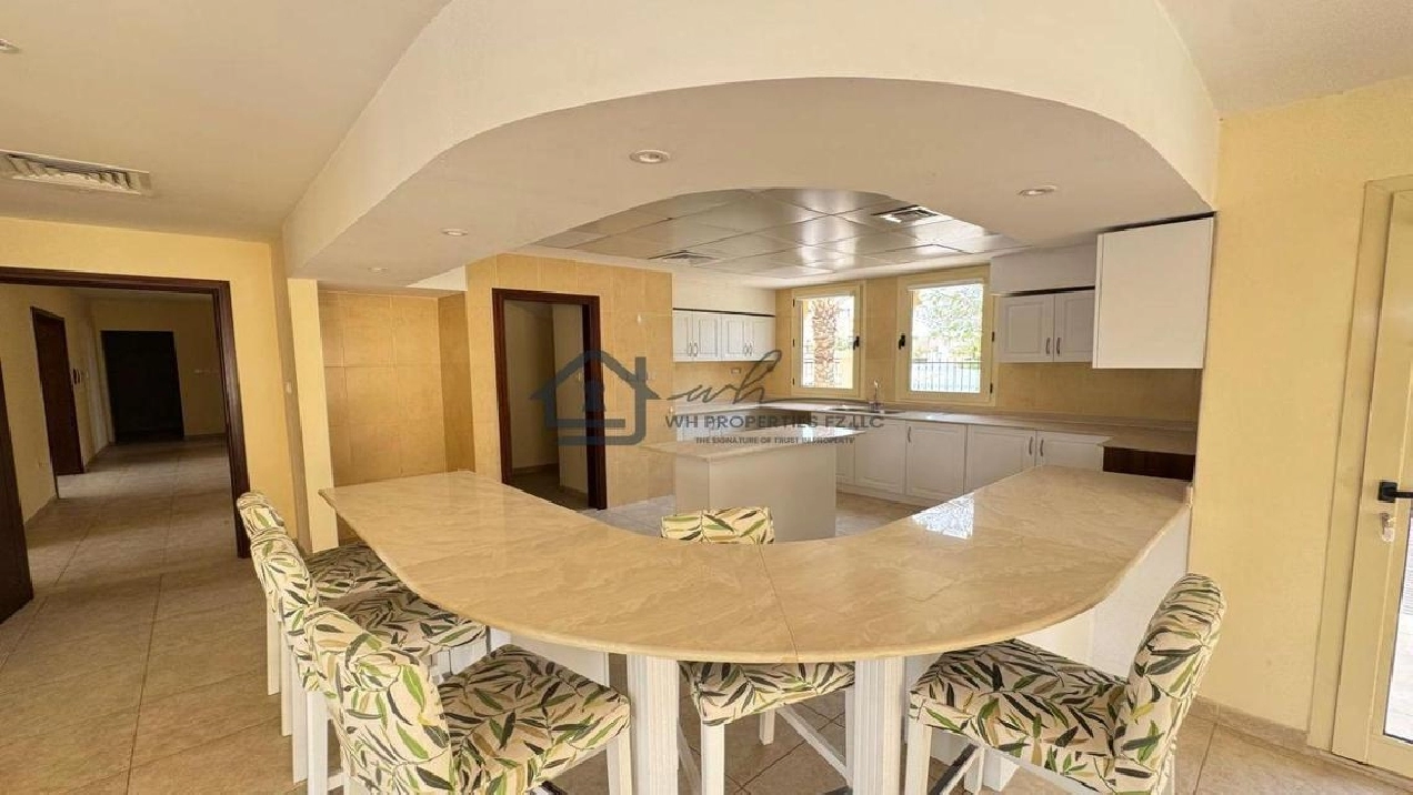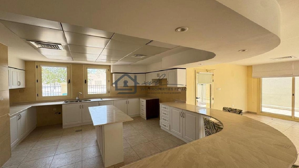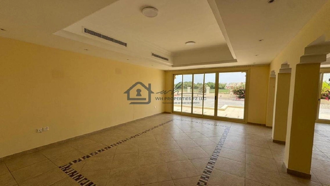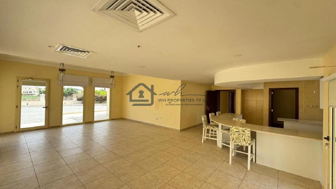 WH Properties is pleased to present this exceptional 4-bedroom + Maid room corner villa for rent in the prestigious Al Hamra Village. Set on an expansive 10,000 sqft plot, this unfurnished villa offers spacious, open-plan living ideal for families seeking privacy, comfort, and upscale community living. Positioned on a prime corner plot, the villa ensures added space, light, and privacy.