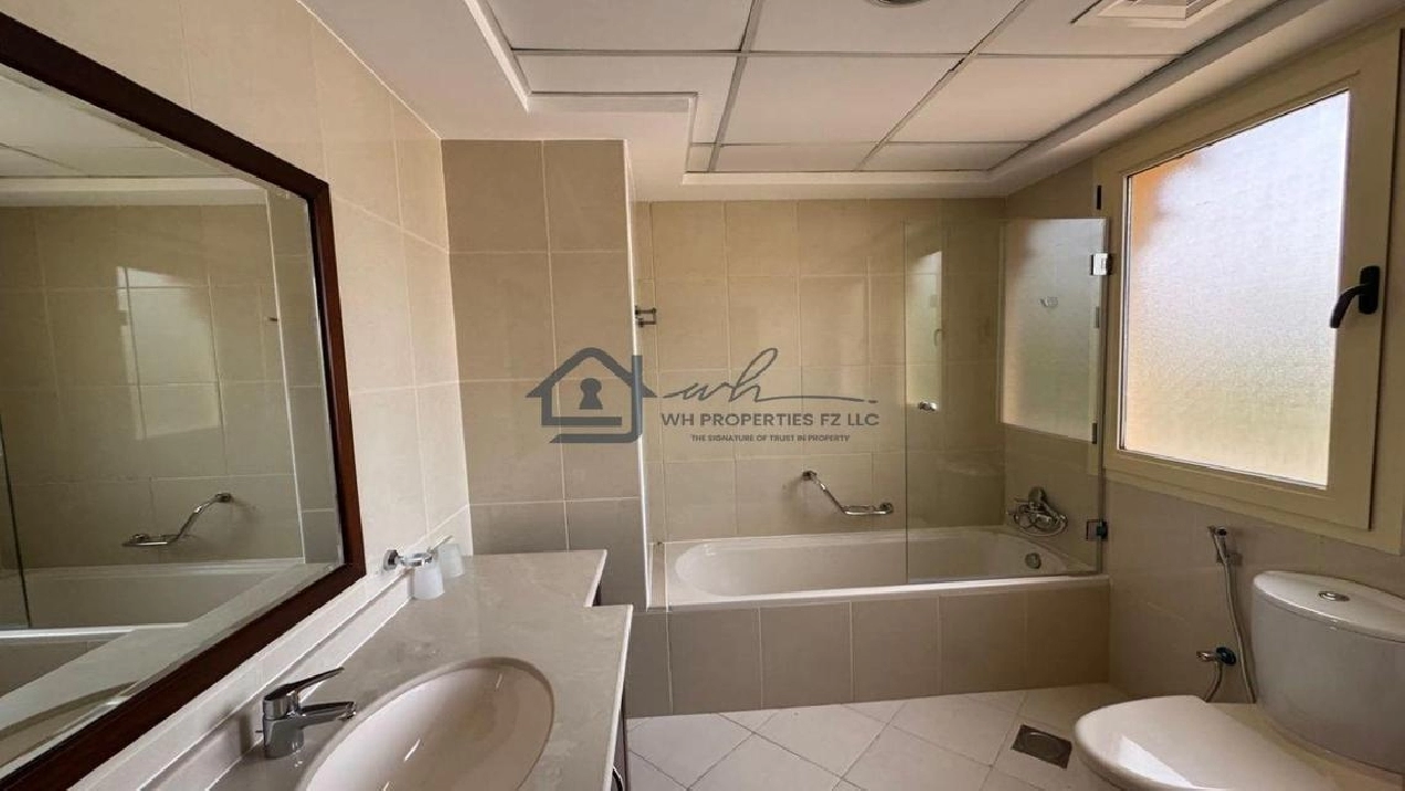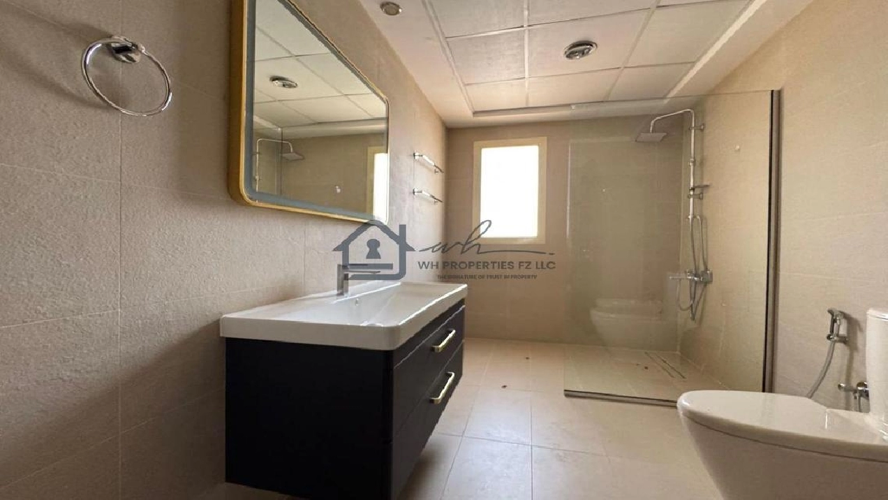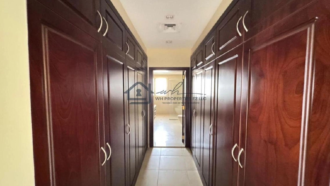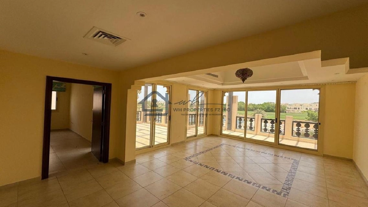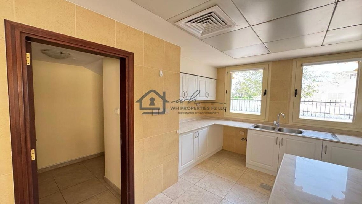 WH Properties is pleased to present this exceptional 4-bedroom + Maid room corner villa for rent in the prestigious Al Hamra Village. Set on an expansive 10,000 sqft plot, this unfurnished villa offers spacious, open-plan living ideal for families seeking privacy, comfort, and upscale community living. Positioned on a prime corner plot, the villa ensures added space, light, and privacy.