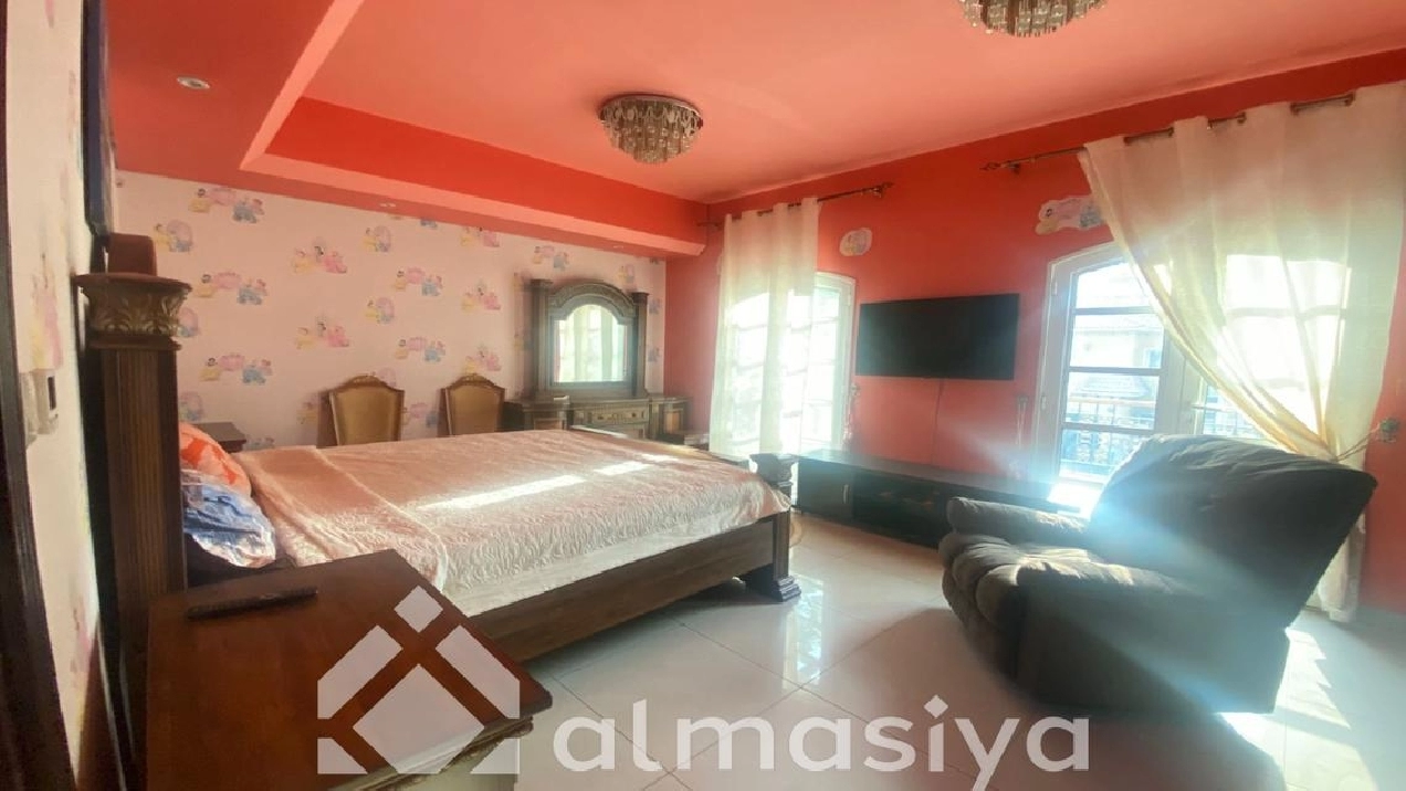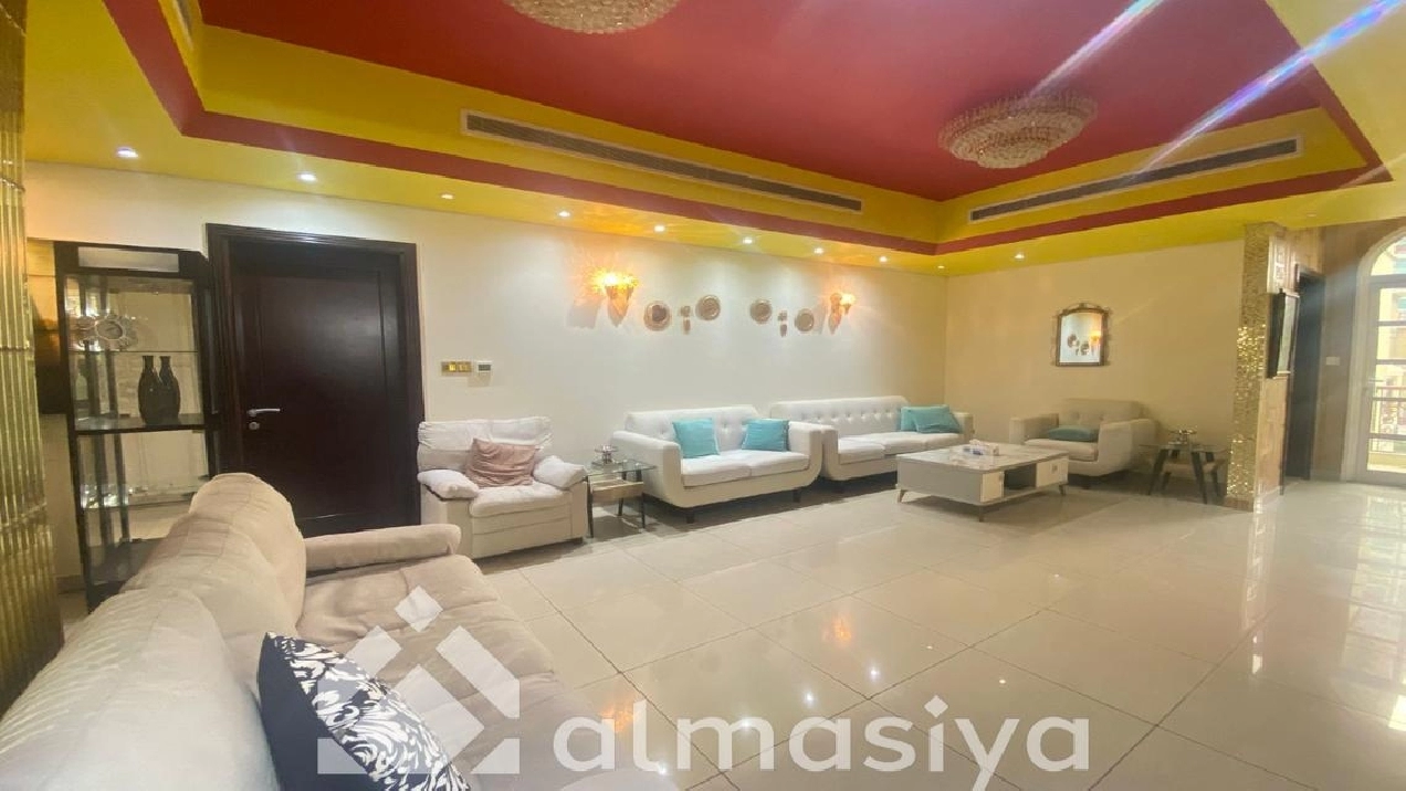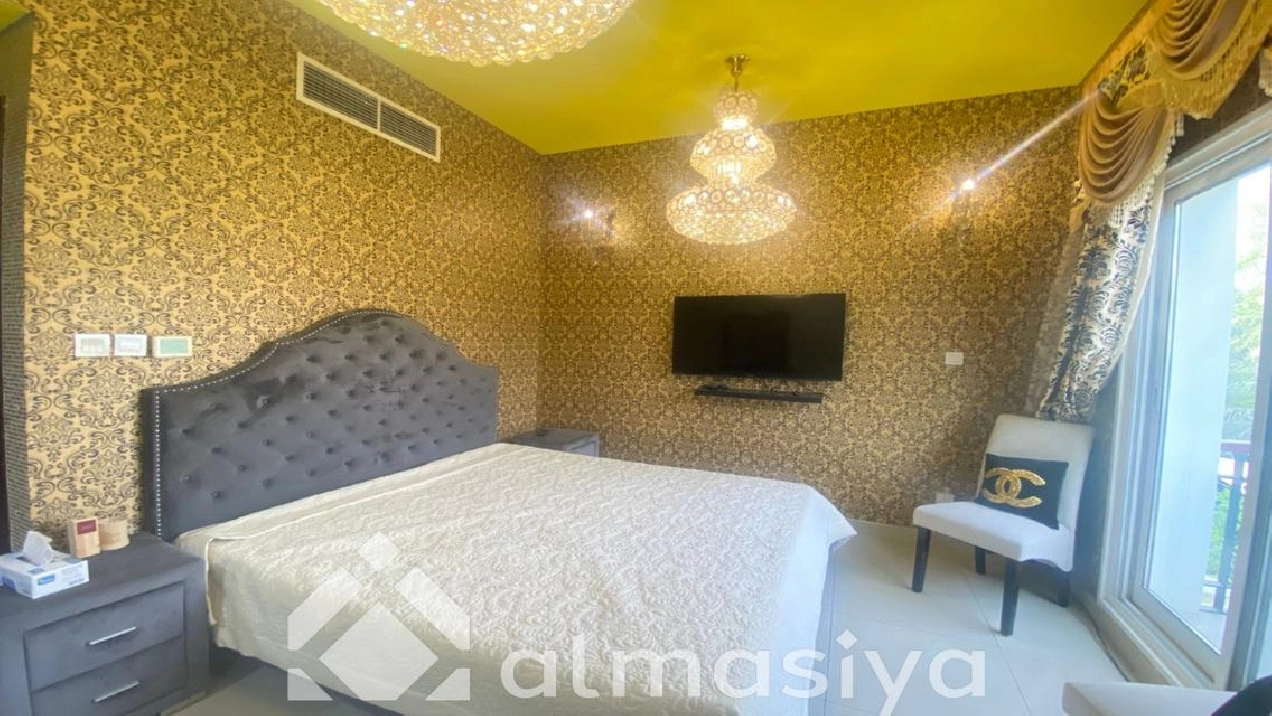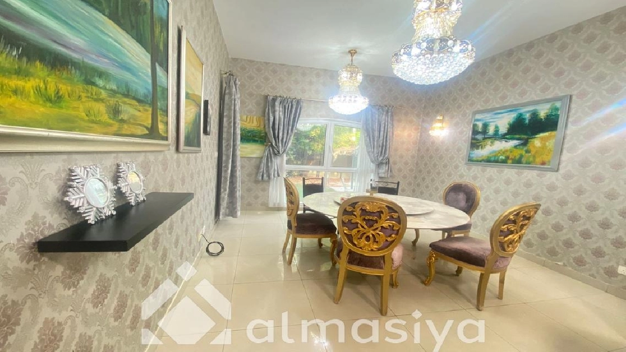 Almasiya Real Estate proudly presents this exquisitely furnished 5-bedroom Gallery-Style Villa in Victory Heights, Dubai Sports City – a haven of elegance, space, and refined living.