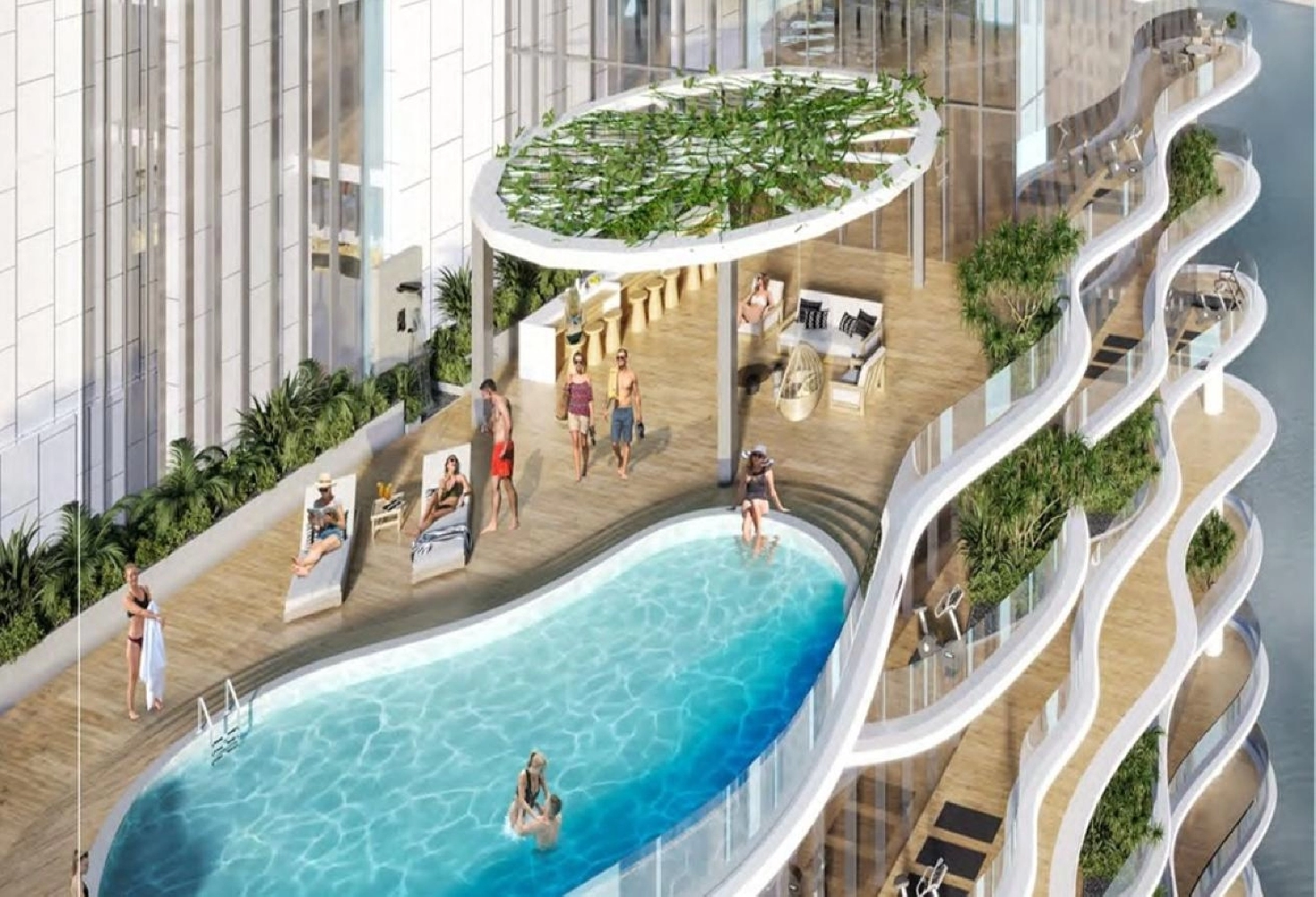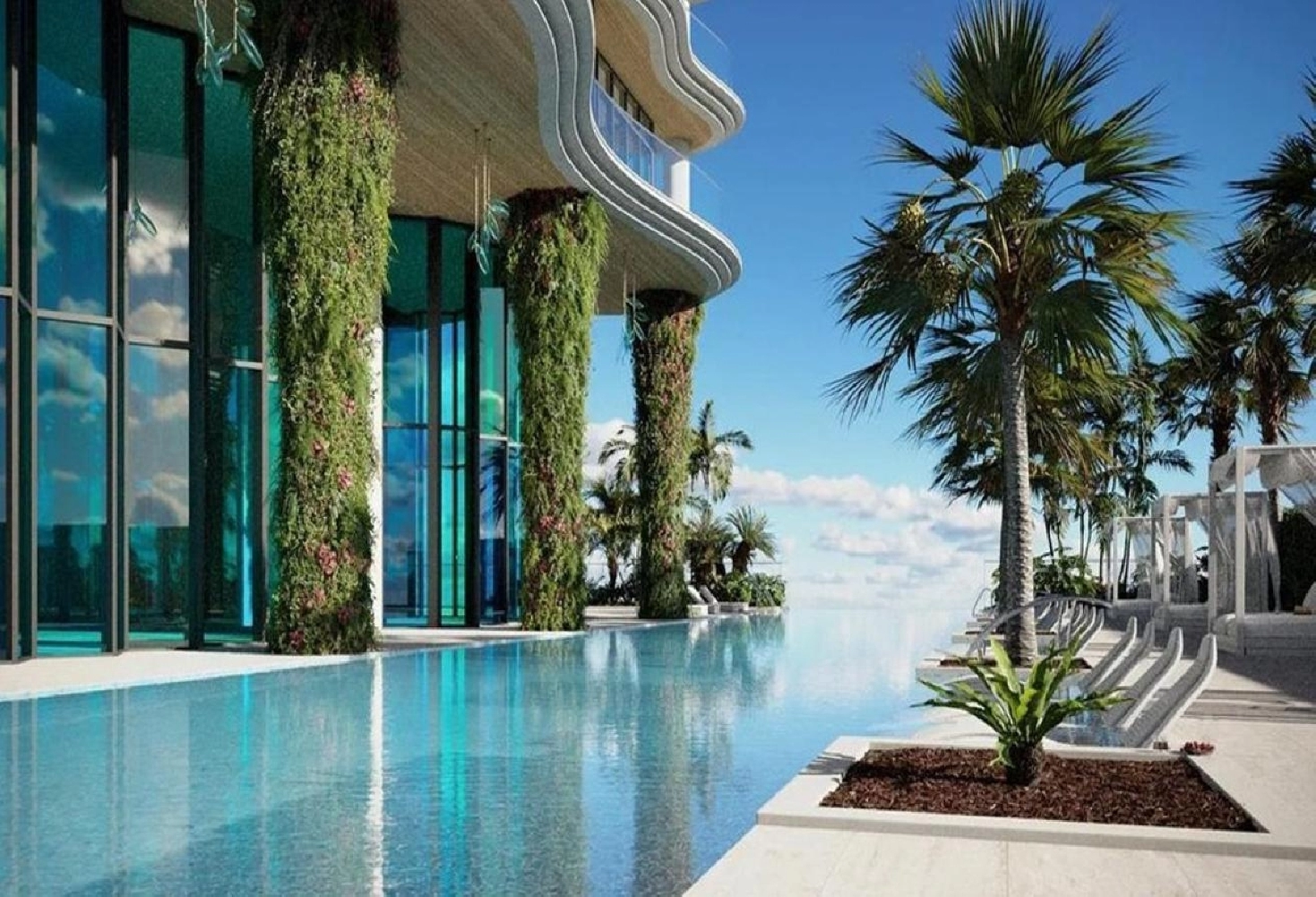 - Pool deck with cabanas