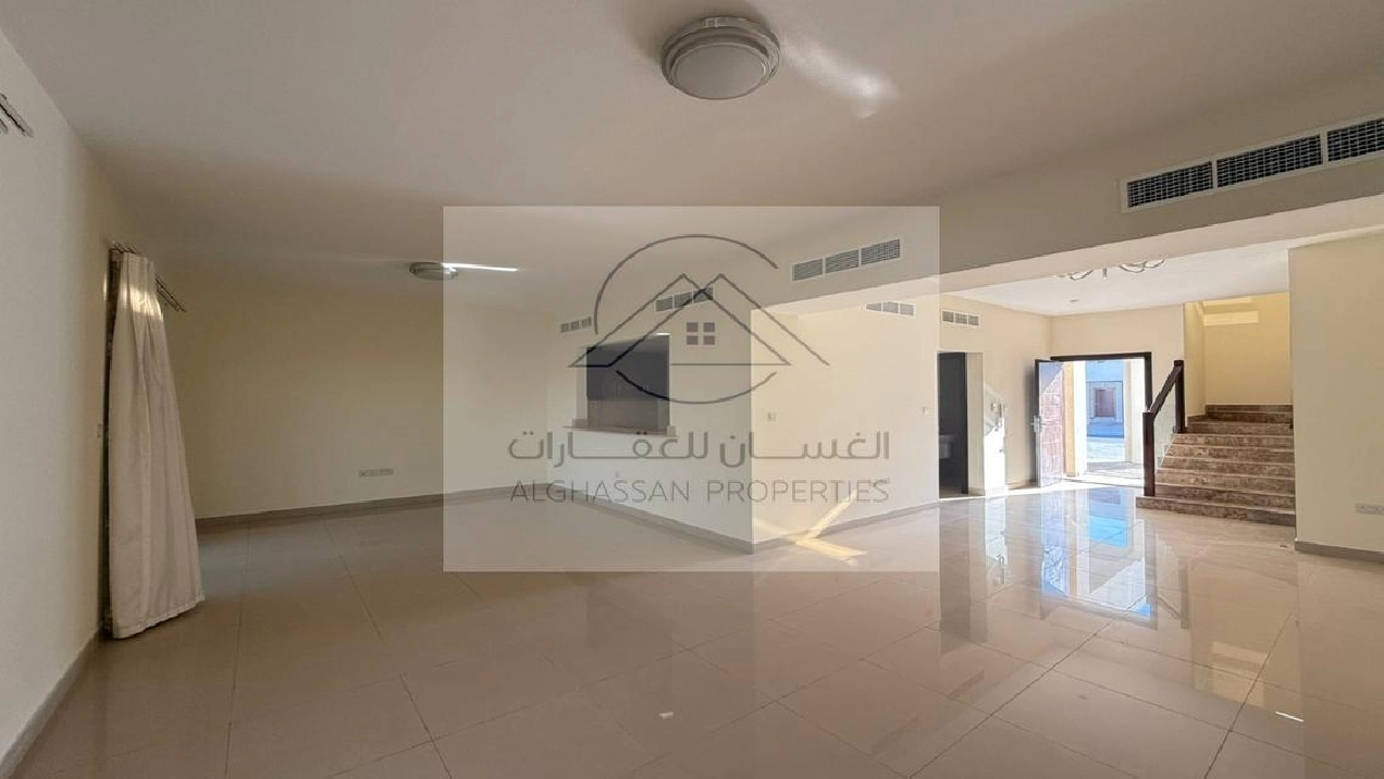 The villa is flooded with natural light and boasts an open-plan living and dining area that creates a welcoming atmosphere for both everyday living and entertaining guests. The kitchen is well-appointed, offering ample storage and workspace for family needs. Central air conditioning ensures year-round comfort.