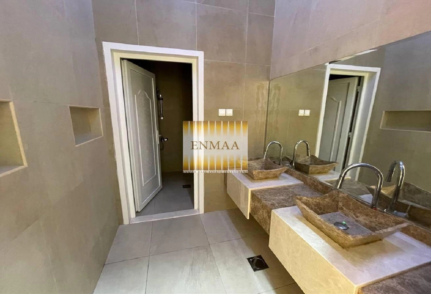 The villa includes 5 spacious master bedrooms, each with a built-in dressing area. A fully equipped main kitchen is available with a large storage room, a laundry room, and a master maid’s room.