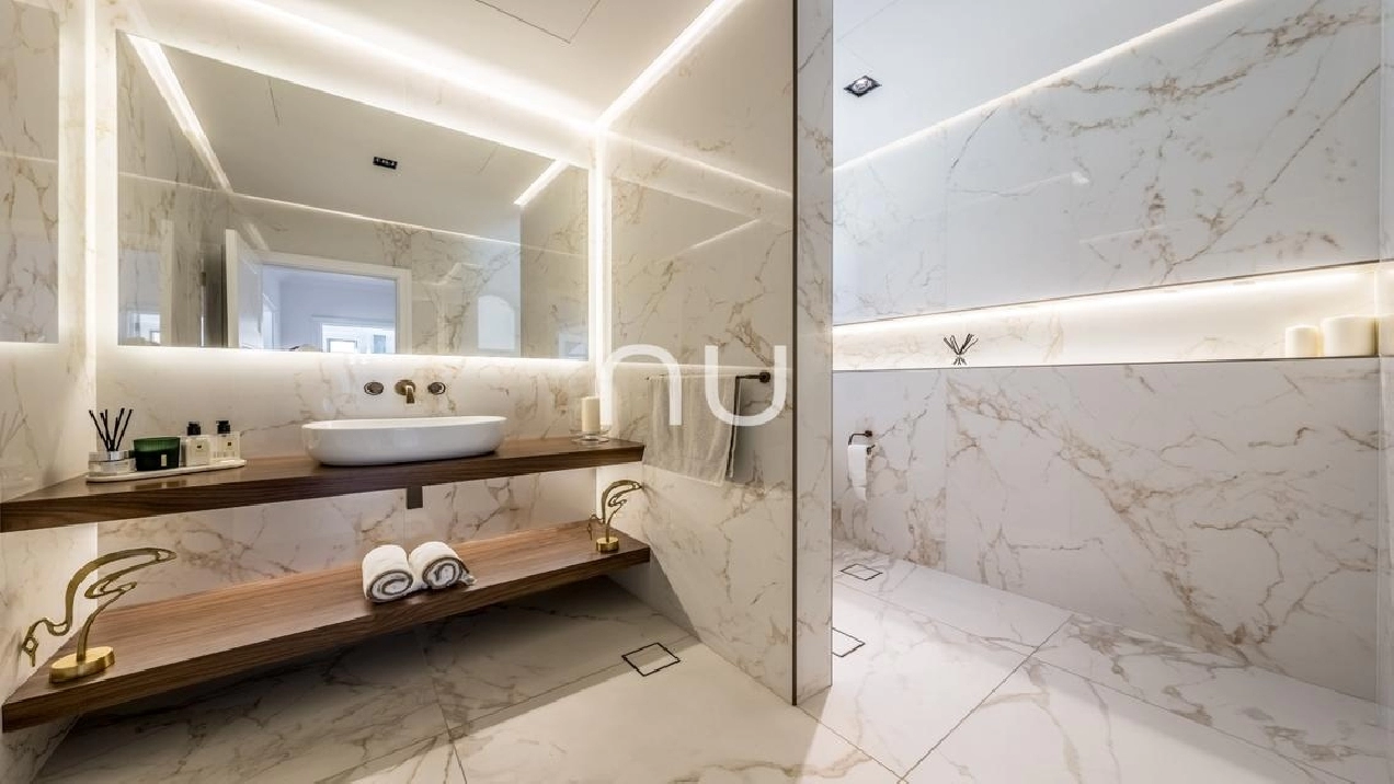 The modern, fully-equipped kitchen with top-of-the-line appliances, custom cabinetry, and ample workspace opens out onto the expansive and open-plan living and dining areas with sophisticated finishes making the ideal sanctuary for both relaxation and entertainment.