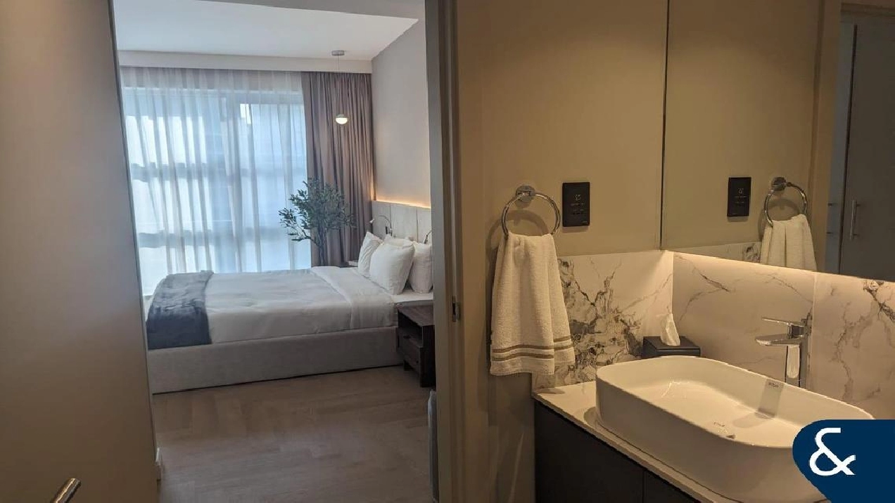 Fully renovated and refurbished, the master bedroom is equipped with en-suite. The balcony, benefitting from a stunning view of Dubai Opera, is accessed through the living room.