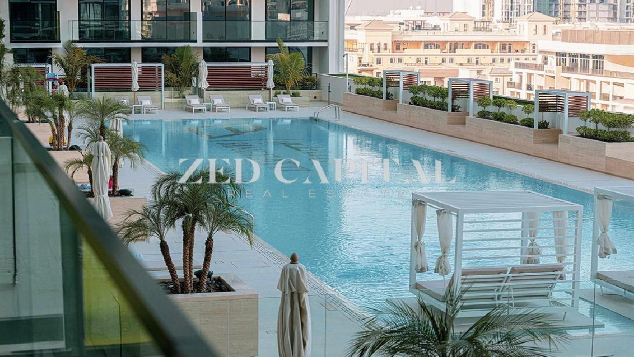 Zed Capital presents this luxury 1-bedroom apartment for rent in Binghatti Amber, Jumeirah Village Circle, Dubai, UAE, offering pool views.