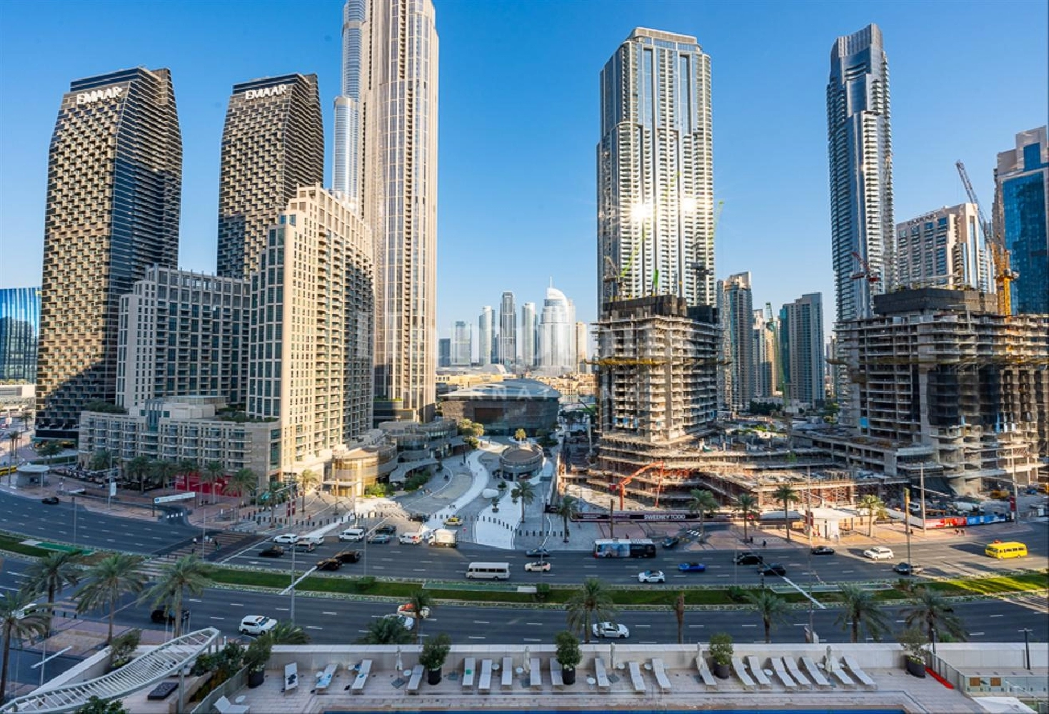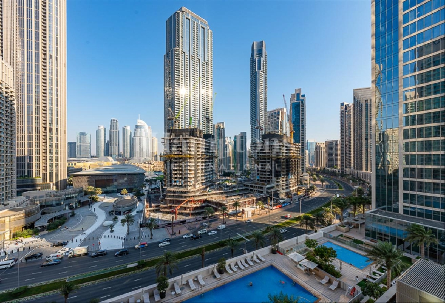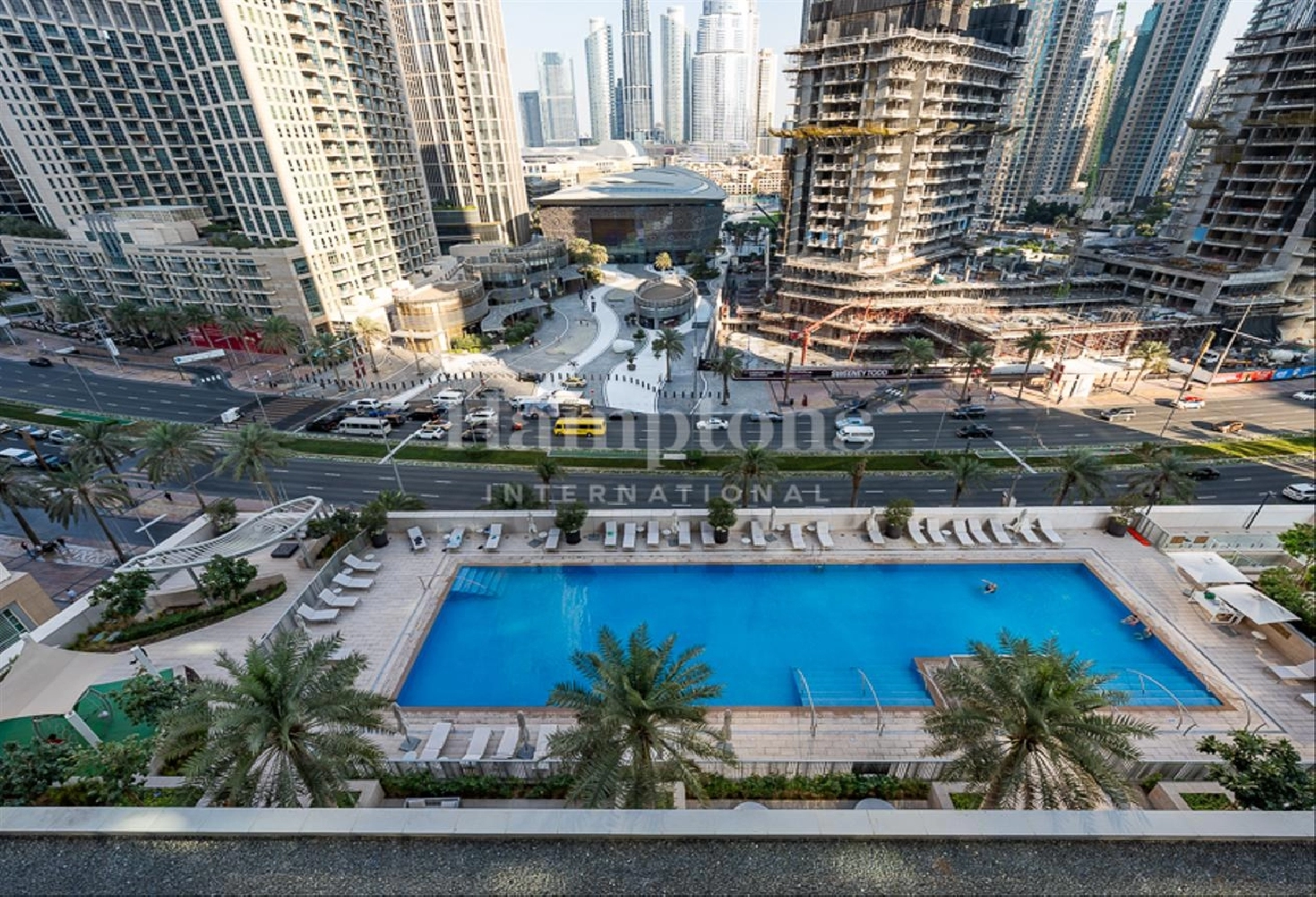 Large Swimming Pool with stunning views of Burj Khalifa